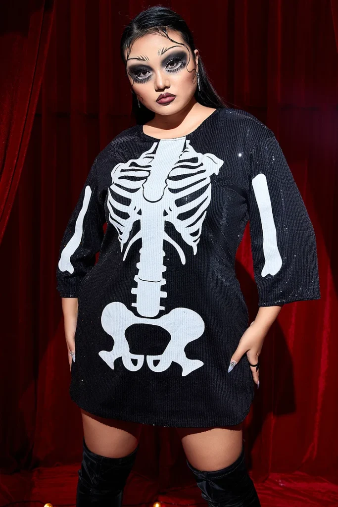 7. Plus Size Sequined Skeleton Sweater Dress Halloween Costume