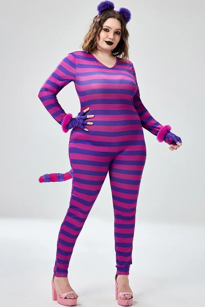 13. Plus Size Cheshire Cat Striped Halloween Costume